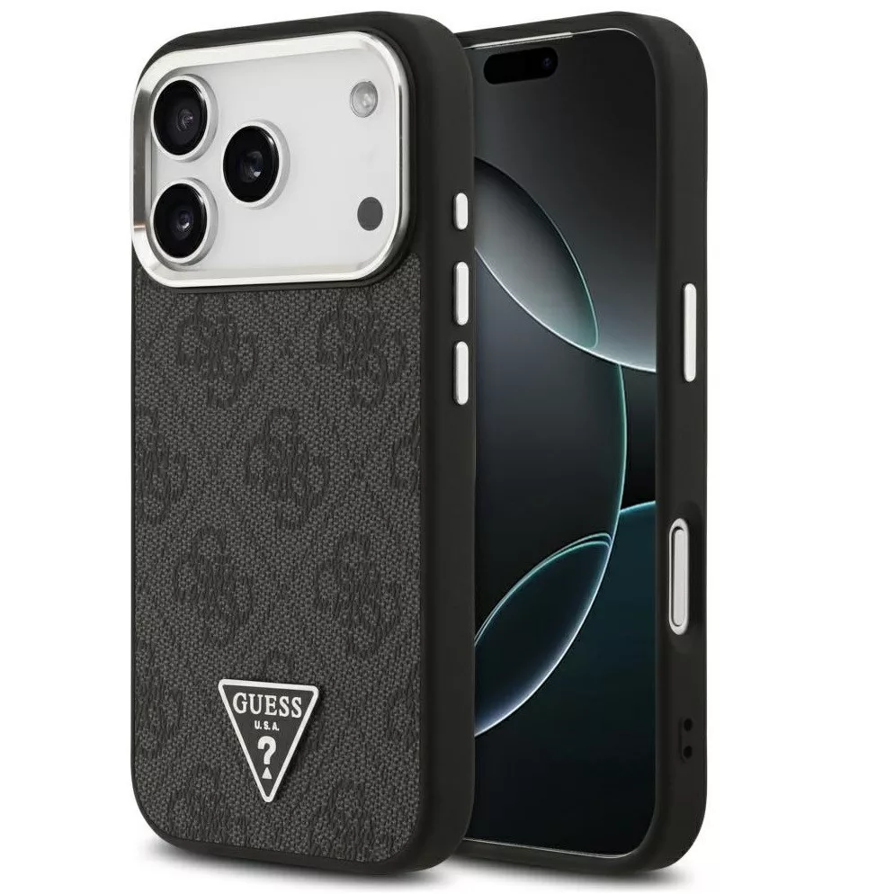Guess 4G Triangle Logo Apple iPhone 17 Pro MagSafe hátlap tok, fekete-ezüst