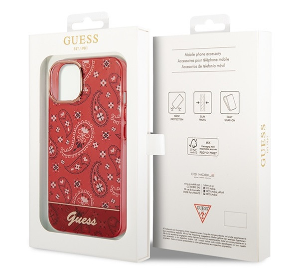 Guess Bandana Paisley Apple iPhone 14 hátlap tok, piros