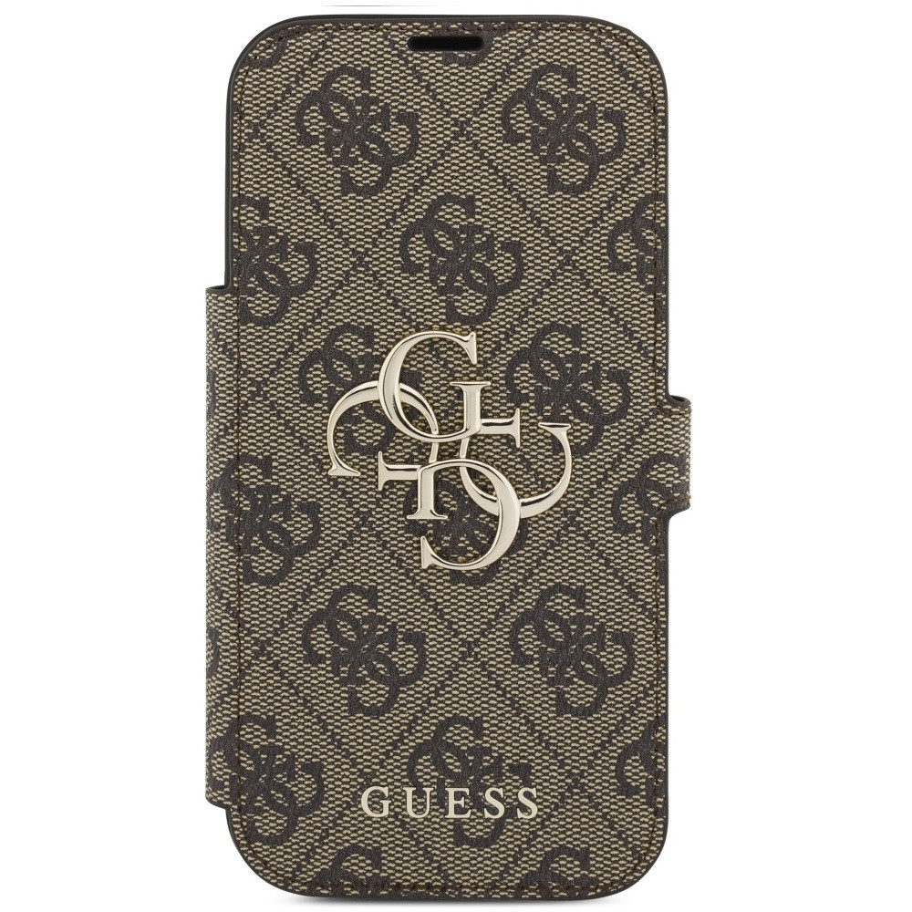 Guess Book 4G Metal Logo Apple iPhone 17 Pro Max oldalra nyíló tok kártyatartóval, barna