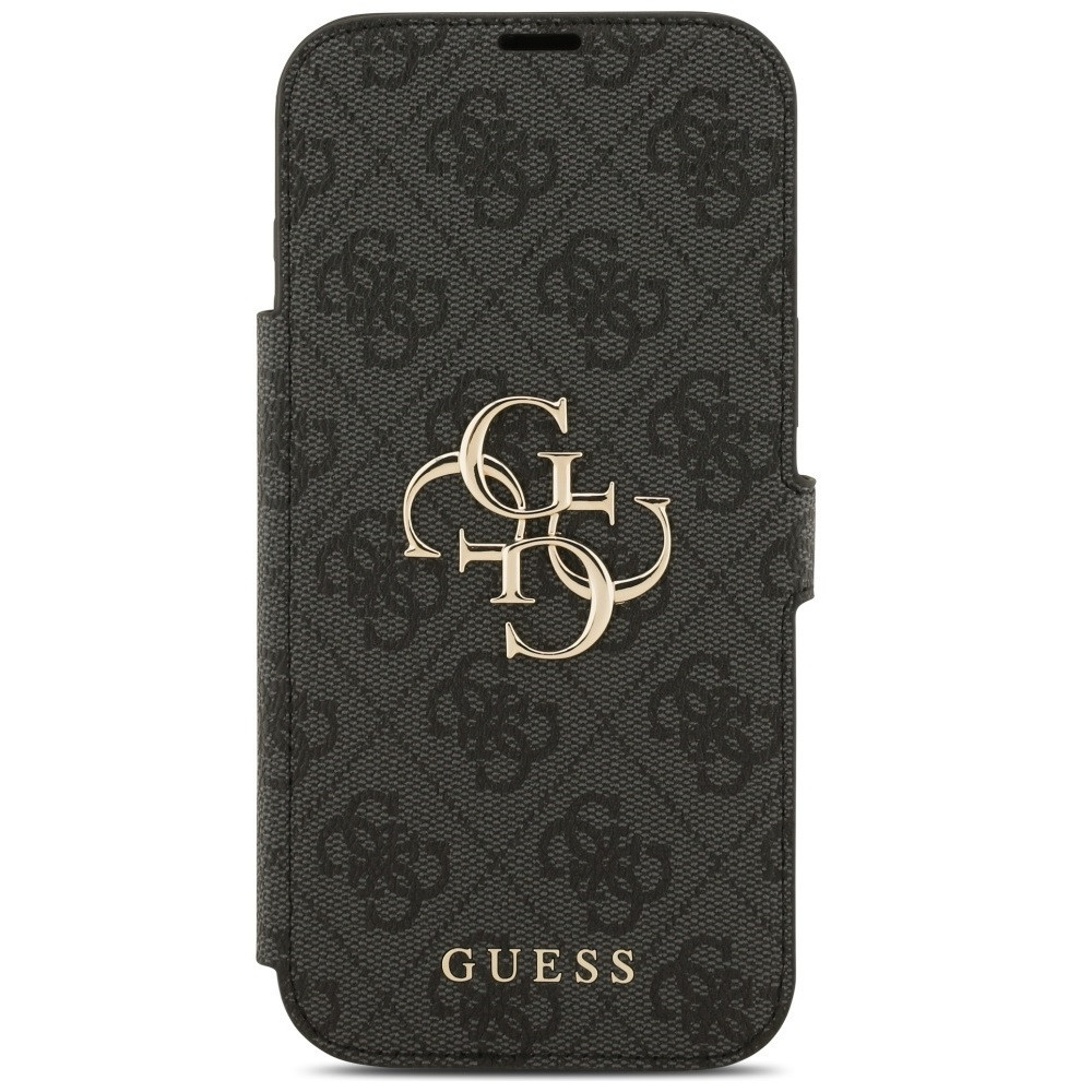 Guess Book 4G Metal Logo Apple iPhone 17 Pro Max oldalra nyíló tok kártyatartóval, fekete