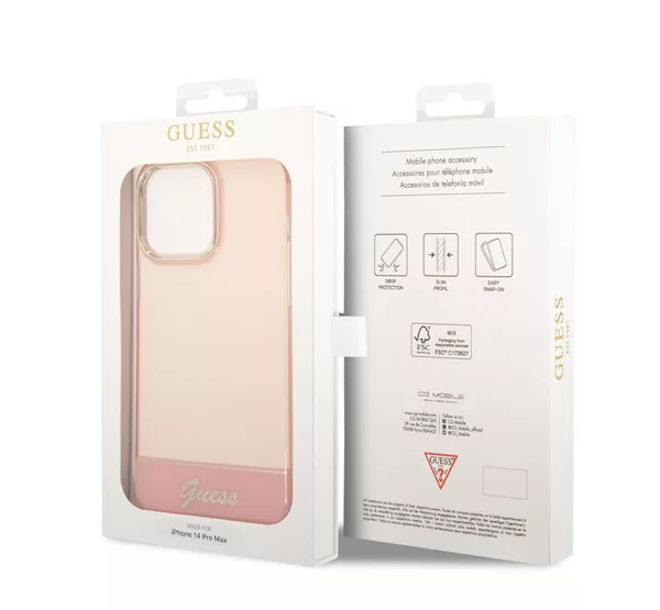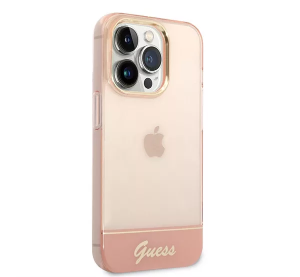 Guess Camera Outline Translucent Apple iPhone 14 Pro Max hátlap tok, rózsaszín