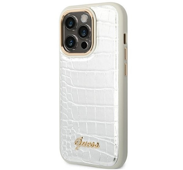 Guess Croco Collection Apple iPhone 14 Pro hátlap tok , ezüst