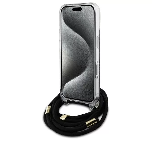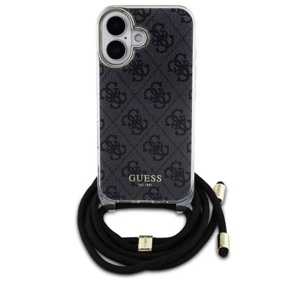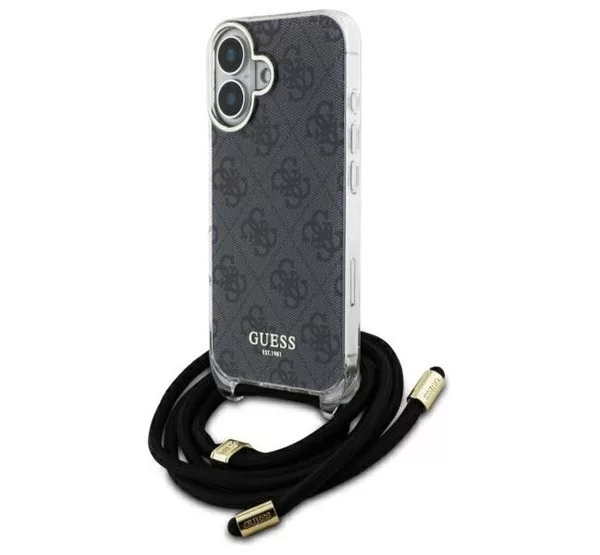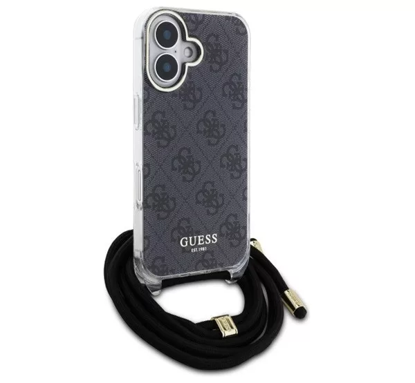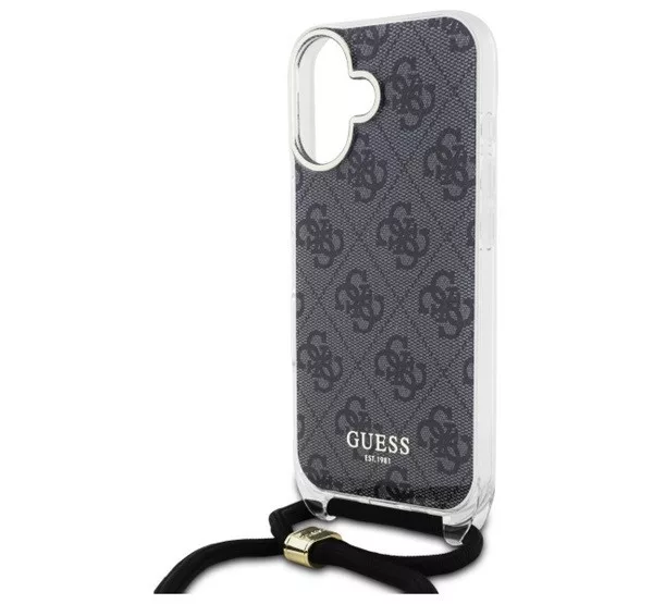 Guess Crossbody Cord 4G Print iPhone 16 hátlap tok, fekete GUHCP16SHC4SEK