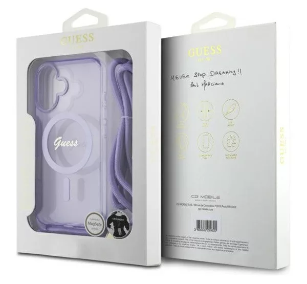 A híres Guess divatház exkluzív védőtáska-kollekciója a stílus és az elegancia esszenciája. A tok közepén az elegáns Guess logó látható, finoman hangsúlyozva a luxusmárka presztízsét. A tokot MagSafe gyűrűvel egészítették ki, amely lehetővé teszi a kényelmes vezeték nélküli töltést. Emellett a keresztbe fűzött nyakpánt lehetővé teszi, hogy a táskát a vállon vagy a nyak körül hordhassuk, így a praktikumot a divatos stílussal kombinálhatjuk.