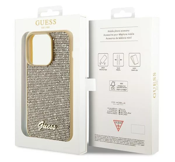 Guess Disco Metal Script Apple iPhone 15 Pro hátlap tok, arany