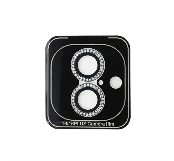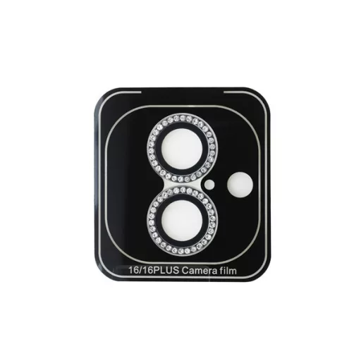 Guess Fixed Glliter iPhone 16/16 Plus kameravédő fólia kövekkel, ezüst