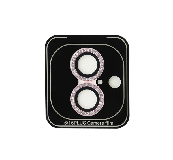 Guess Fixed Glliter iPhone 16/16 Plus kameravédő fólia kövekkel, rózsaszín (GUCL162SGGP)