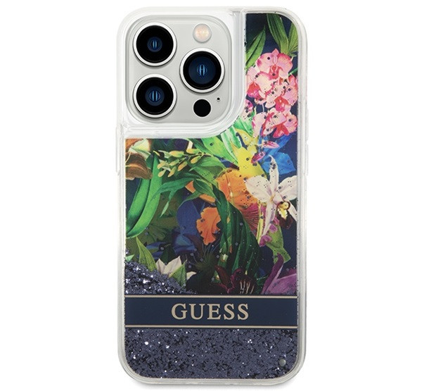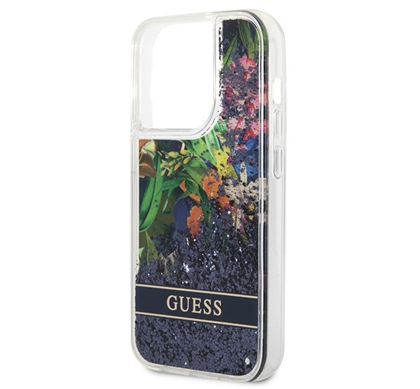Guess Flower Liquid Glitter Apple iPhone 14 Pro hátlap tok, kék