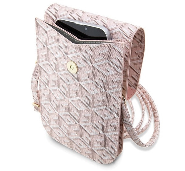 A Guess GCube Stripe kis táska rózsaszín színben, prémium minőségű anyagokból készült, és a híres Guess logóval díszített. Stílusos és praktikus választás a mindennapi használatra, ideális a személyes tárgyak tárolására. A táska elegáns megjelenést biztosít, tökéletes kiegészítő bármilyen outfithez. Mérete: 17 cm x 10 cm x 2 cm