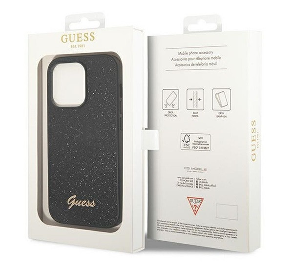 Guess Glitter Flakes Metal Logo prémium borító, amely egy speciális anyagot használ, amelynek belsejében csillogó csillámok vannak. A tok olyan hihetetlenül elegáns, ugyanakkor a lehető legjobban védi a telefont. A csillogó csillámok közvetlen napfényben, de otthoni megvilágításban vagy egy buliban is a legjobban érvényesülnek.