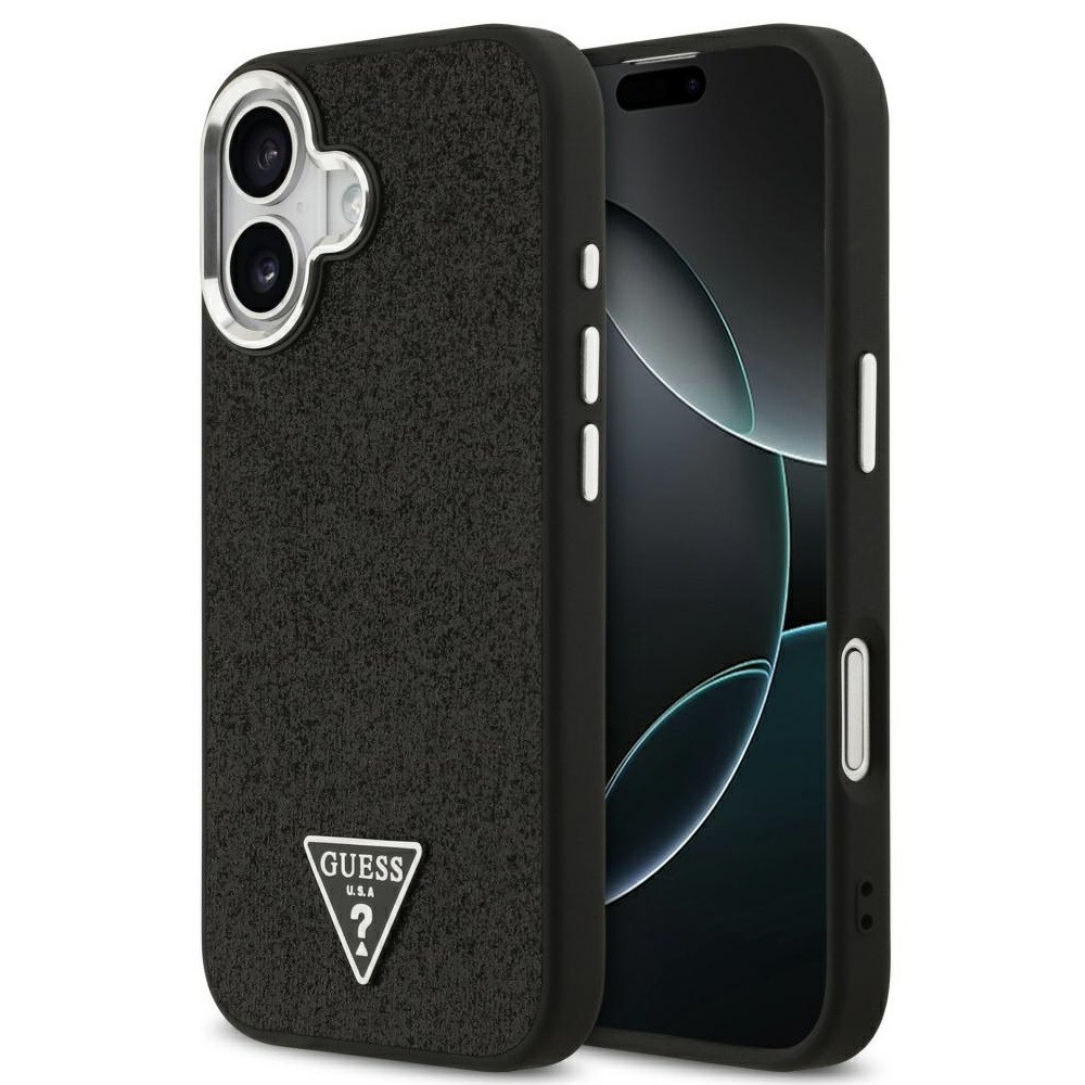 Guess Glitter Triangle Logo Apple iPhone 17 MagSafe hátlap tok, fekete-ezüst