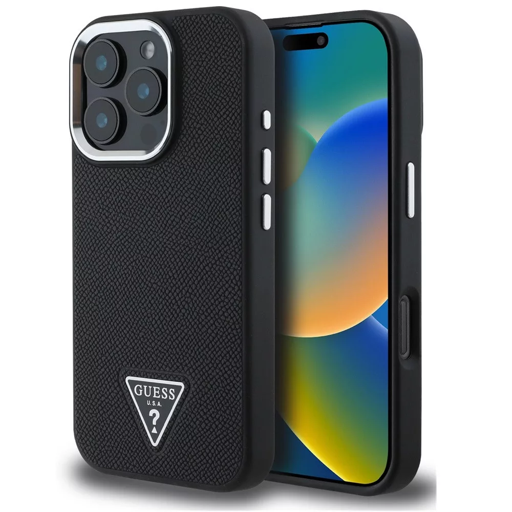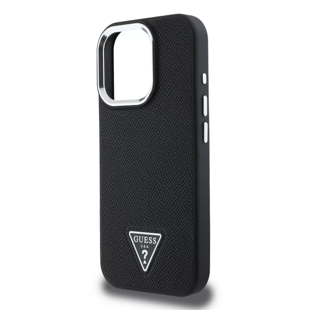 Guess Grained Triangle Apple iPhone 16 Pro Max MagSafe tok, fekete Guess Grained Triangle Apple iPhone 16 Pro Max MagSafe tok, fekete