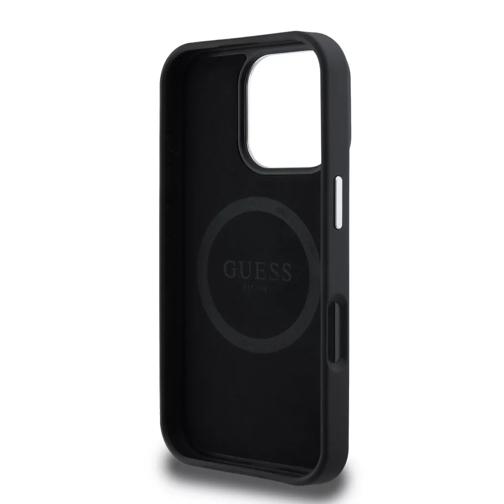 Guess Grained Triangle Apple iPhone 16 Pro Max MagSafe tok, fekete