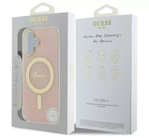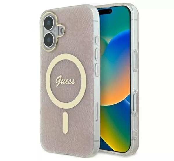 Guess IML 4G MagSafe iPhone 16 MagSafe kemény hátlap tok, rózsaszín GUHMP16SH4STP