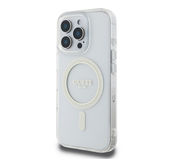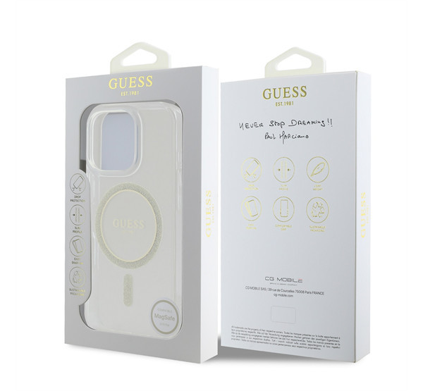 A Guess IML Glitter Ring Apple iPhone 16 Pro MagSafe kompatibilis hátlap tok egy stílusos és praktikus kiegészítő, amely kifejezetten az iPhone 16 Pro számára készült. A tok elegáns glitteres dizájnnal rendelkezik, amely vonzó, csillogó megjelenést biztosít. A beépített gyűrűs tartó extra kényelmet nyújt, megkönnyítve a telefon használatát és fogását. A tok MagSafe kompatibilis, így támogatja a vezeték nélküli töltést és könnyedén csatlakoztatható bármilyen MagSafe kiegészítőhöz. Ez a tok nemcsak esztétikus, hanem hatékony védelmet nyújt az iPhone 16 Pro számára a karcolások és ütődések ellen.