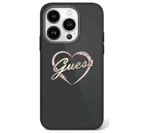 Guess IML Heart iPhone 16 Pro kemény hátlap tok, fekete GUHCP16LHCHGSPK