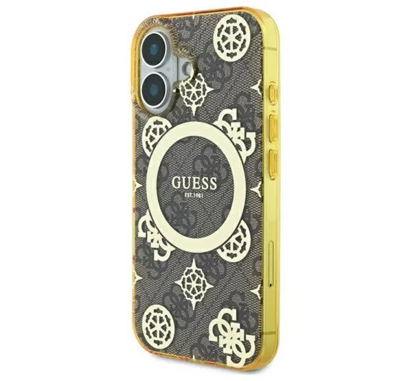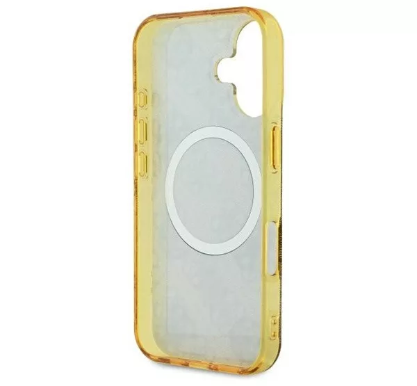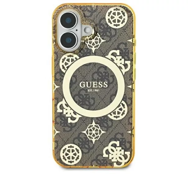 Ez az egyedi tok elegáns aranyszínű részletekkel hívja fel magára a figyelmet, köztük a márka jellegzetes emblémáival és a hozzá illő aranyszínű MagSafe gyűrűvel. A kiváló minőségű 4G nyomtatás, amely a Guess stílus ikonja, klasszikus, időtlen megjelenést kölcsönöz a toknak. Emellett a Guess logó finoman a mágneses gyűrű belsejében kapott helyet, tökéletesen kiegészítve az általános dizájnt.