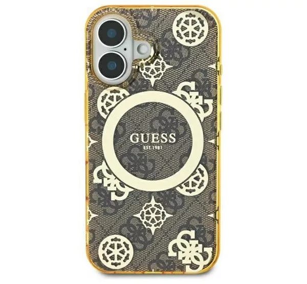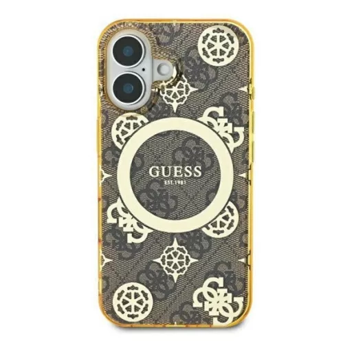 Ez az egyedi tok elegáns aranyszínű részletekkel hívja fel magára a figyelmet, köztük a márka jellegzetes emblémáival és a hozzá illő aranyszínű MagSafe gyűrűvel. A kiváló minőségű 4G nyomtatás, amely a Guess stílus ikonja, klasszikus, időtlen megjelenést kölcsönöz a toknak. Emellett a Guess logó finoman a mágneses gyűrű belsejében kapott helyet, tökéletesen kiegészítve az általános dizájnt.