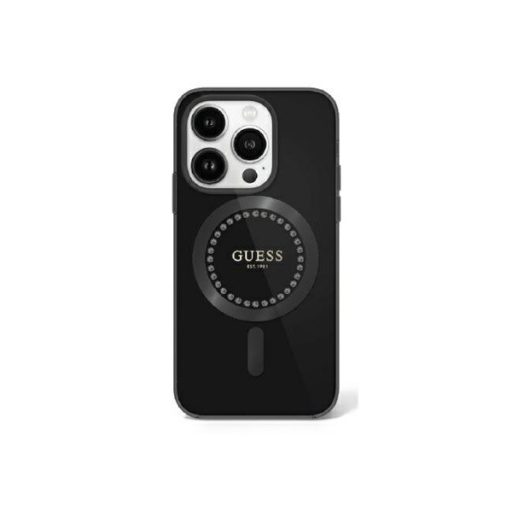 Guess IML Rhinestones MagSafe iPhone 16 Pro Max kemény hátlap tok, fekete GUHMP16XPFTDTEK