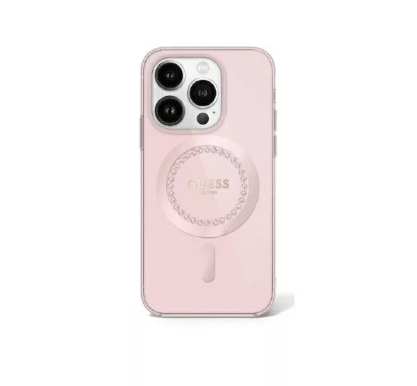 Guess IML Rhinestones MagSafe iPhone 16 Pro Max kemény hátlap tok, rózsaszín GUHMP16XPFTDTEP