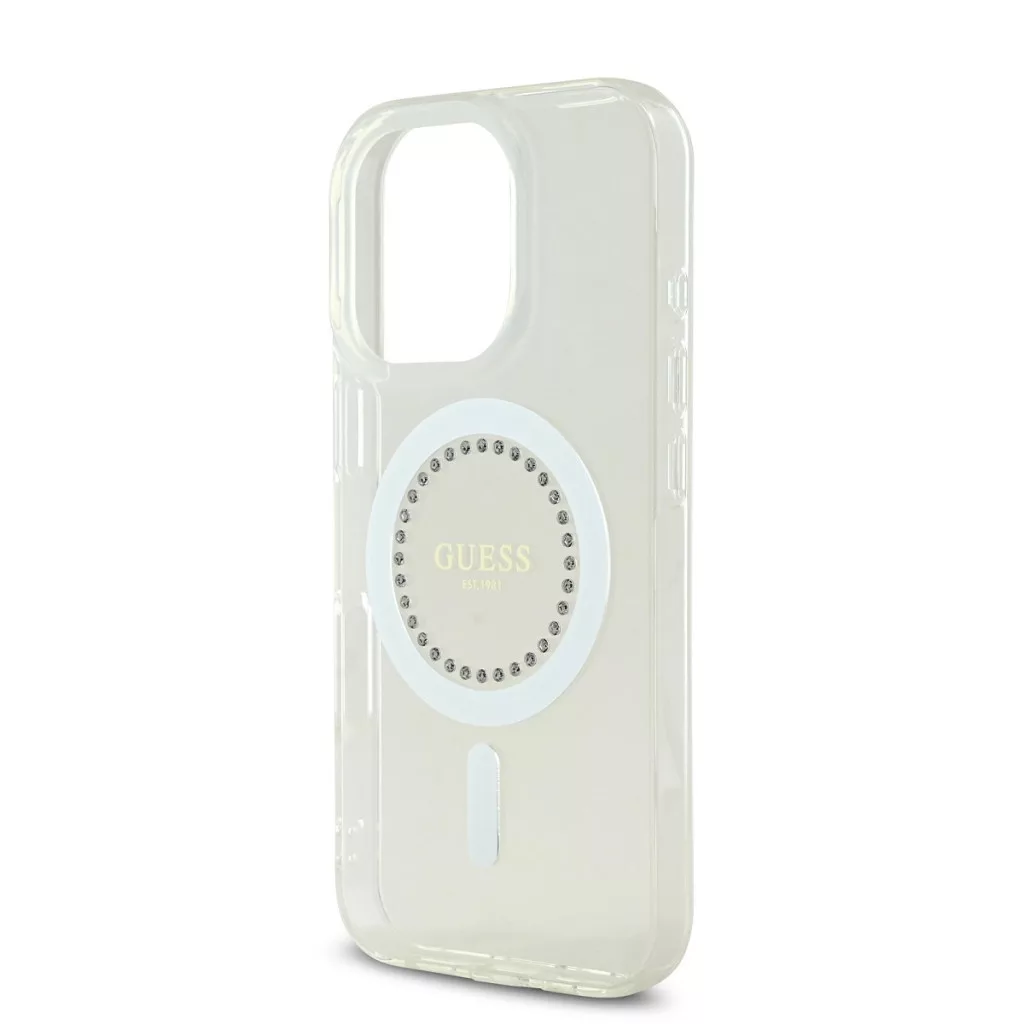 Guess IML Rhinestones MagSafe iPhone 16 kemény hátlap tok, fehér