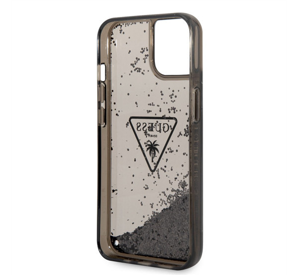 Guess Liquid Glitter Triangle Logo Apple iPhone 14 hátlap tok, fekete