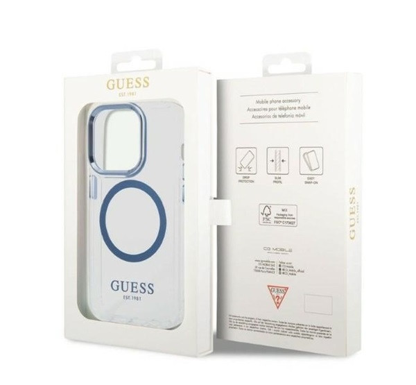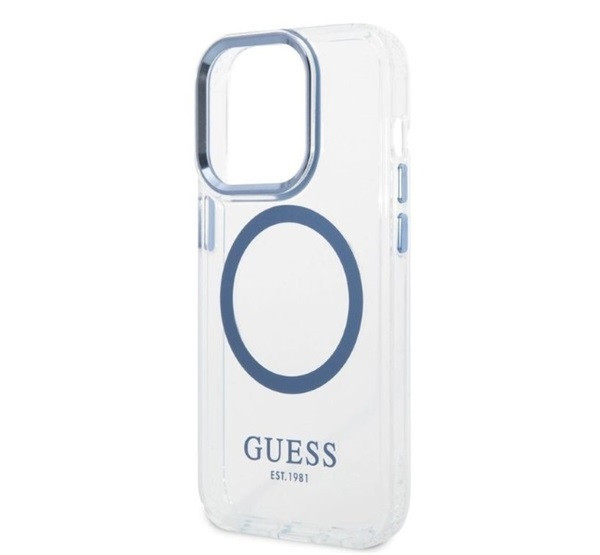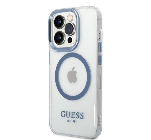 Guess Metal Outline Magsafe Apple iPhone 14 Pro hátlap tok, kék