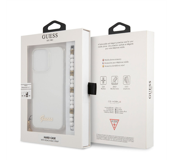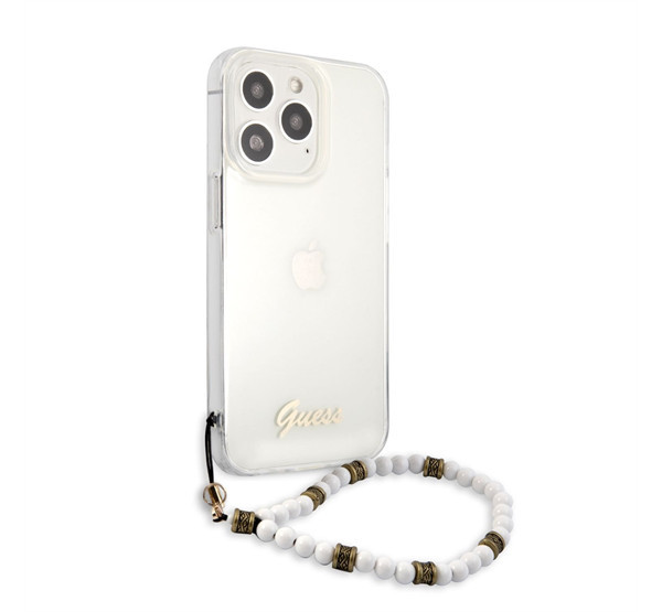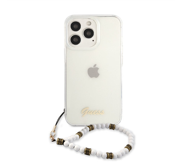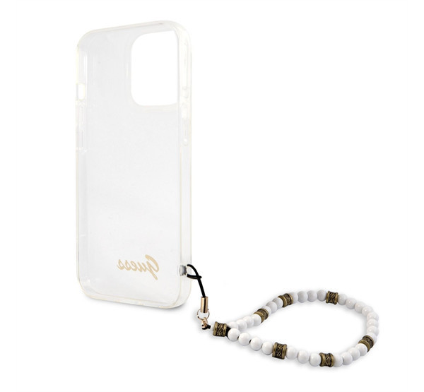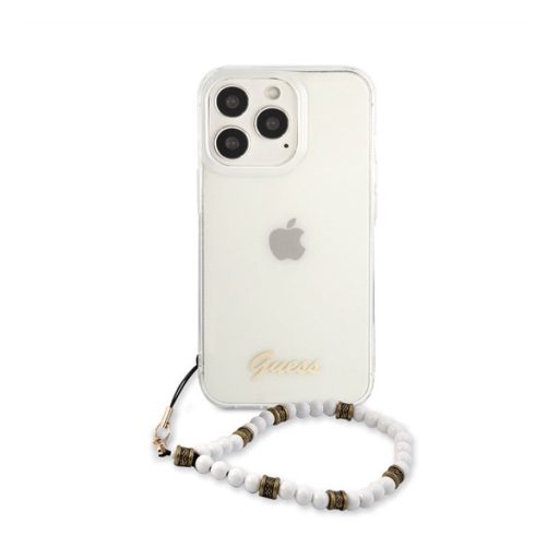 Guess PC Script and White Pearls Apple iPhone 13 Pro hátlap tok, átlátszó