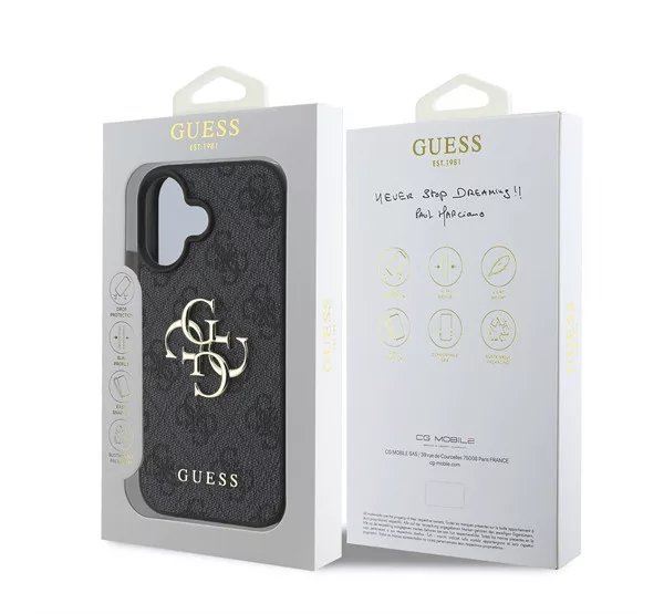 A prémium kategóriás Guess PU 4G Metal Logo hátlap elegáns, jellegzetes 4G mintával és a GUESS logóval kiegészítve.