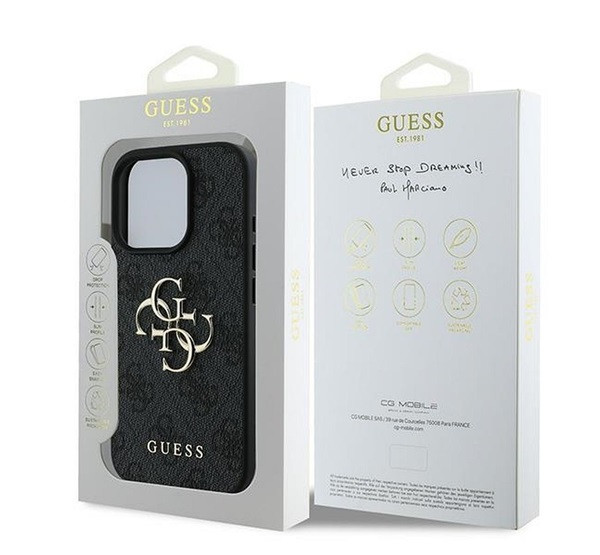 Guess PU 4G Metal Logo Apple iPhone 16 Pro hátlap tok, szürke