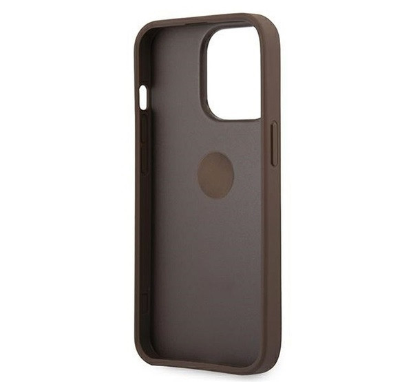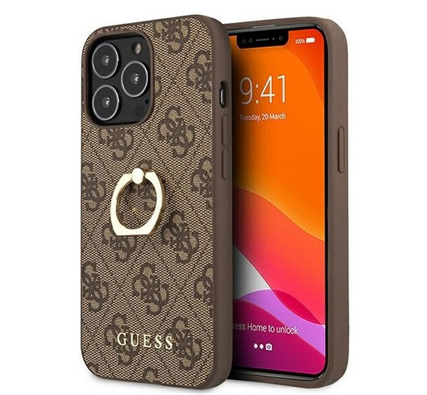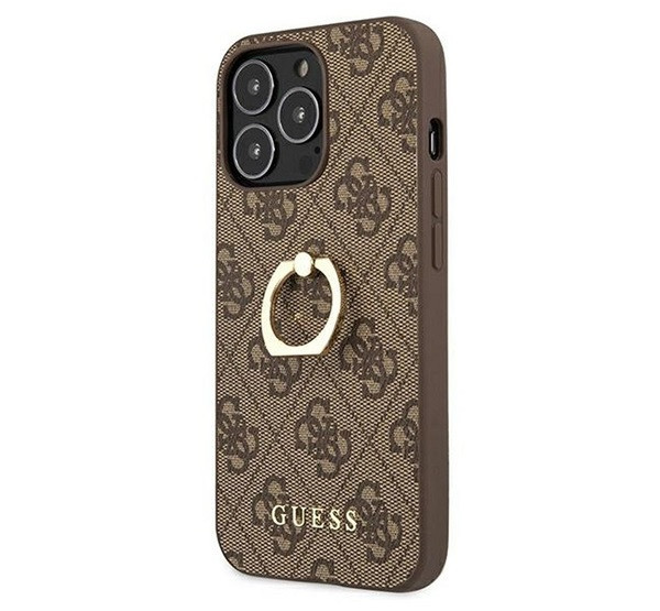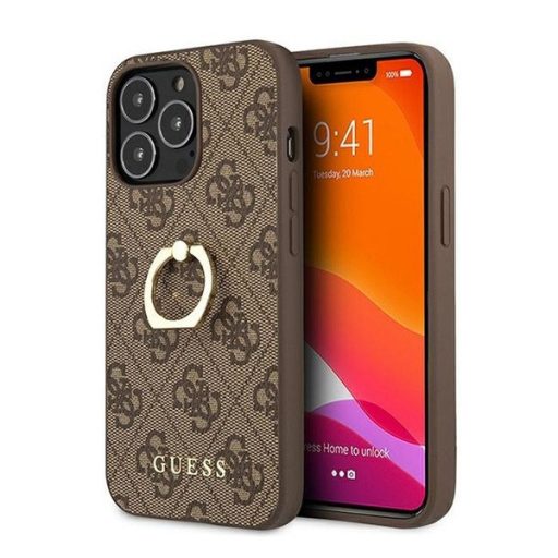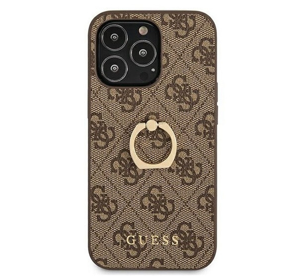 Guess 4G kollekció gyűrűs állvánnyal. Elegáns, kockás, bőrt imitáló textúra jellemzi, amelyet a burkolat hátulján található praktikus gyűrű alakú fogantyú díszít, amely lehetővé teszi, hogy átdugja rajta az ujját, és kényelmesen és biztonságosan használhassa készülékét.