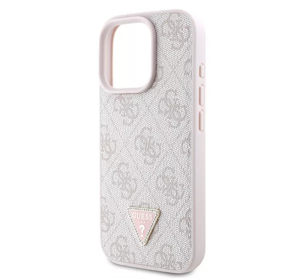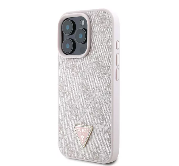 Guess PU 4G Strass Triangle Metal Logo Apple iPhone 16 Pro Max hátlap tok, rózsaszín