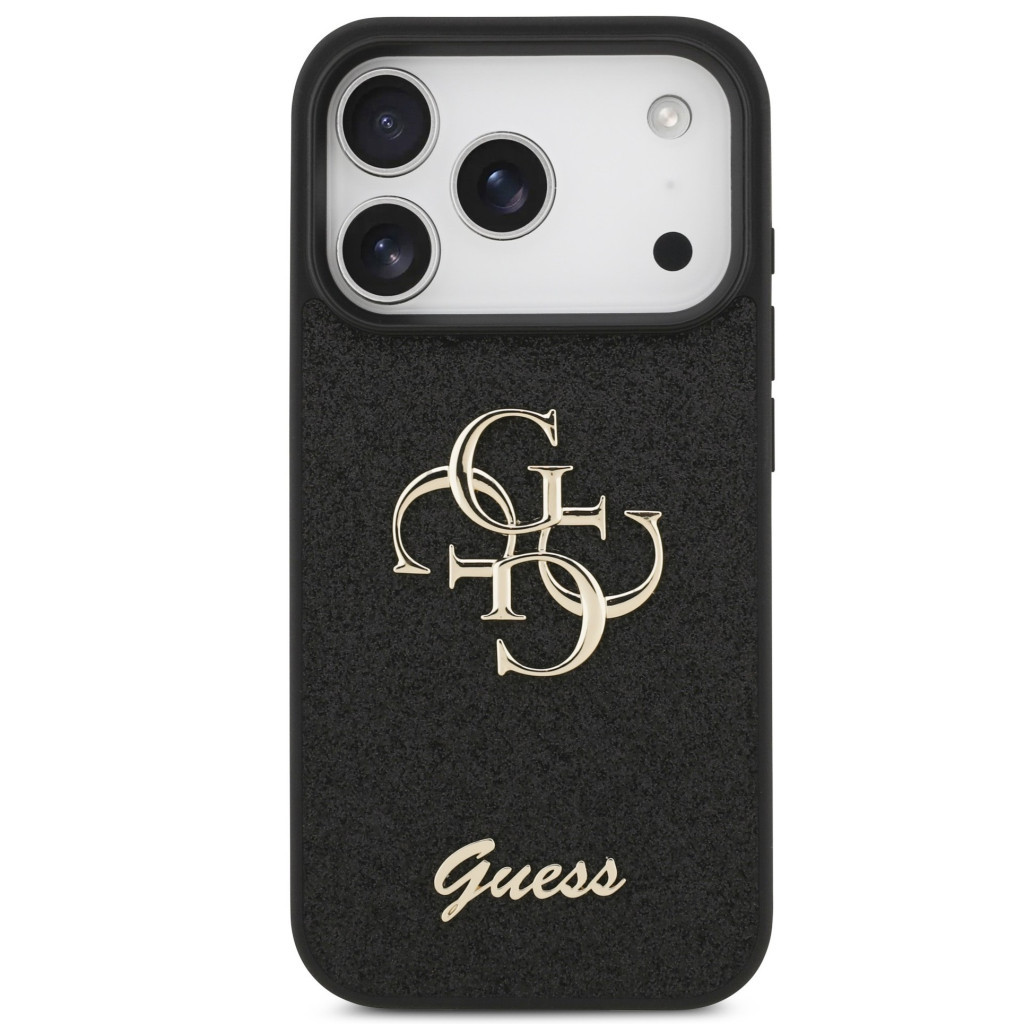 Guess PU Fixed Glitter 4G Metal Logo Apple iPhone 17 Pro hátlap tok, fekete