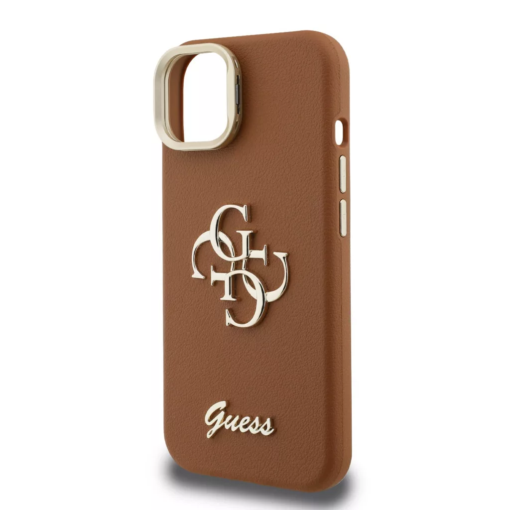Guess PU Grained 4G Logo Stand Camera Frame iPhone 14 hátlap tok kitámasztóval, barna Guess PU Grained 4G Logo Stand Camera Frame iPhone 14 hátlap tok kitámasztóval, barna