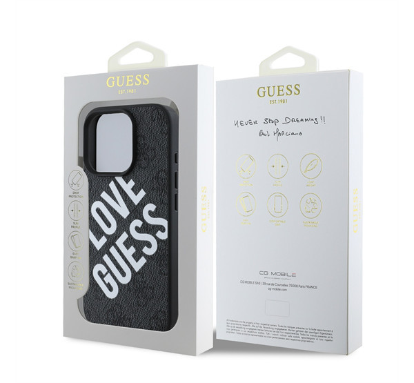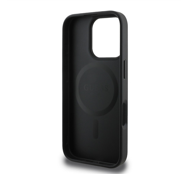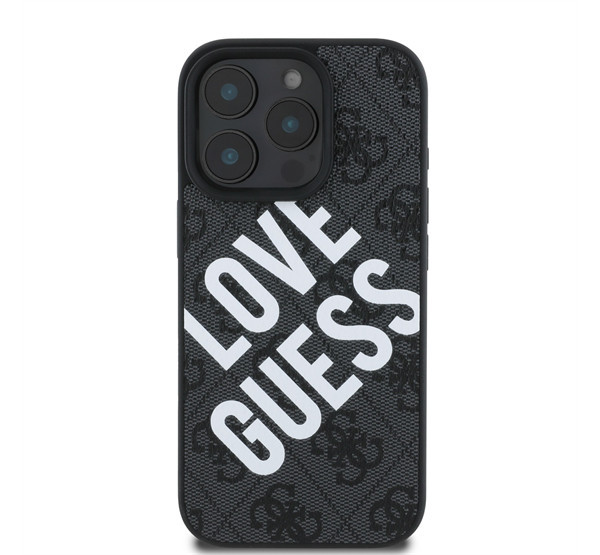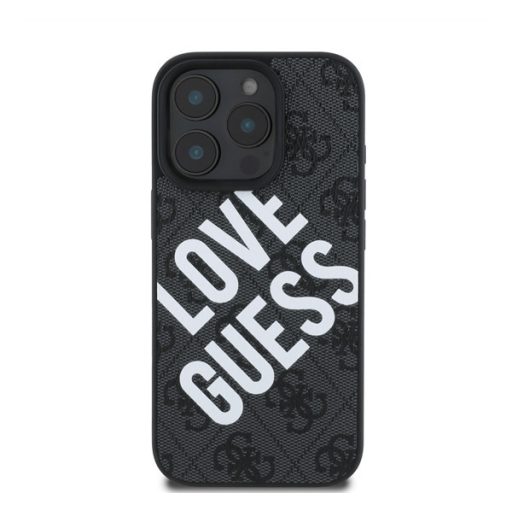 Guess PU Leather 4G Big Love Logo Apple iPhone 16 Pro Magsafe kompatibilis hátlap tok, fekete