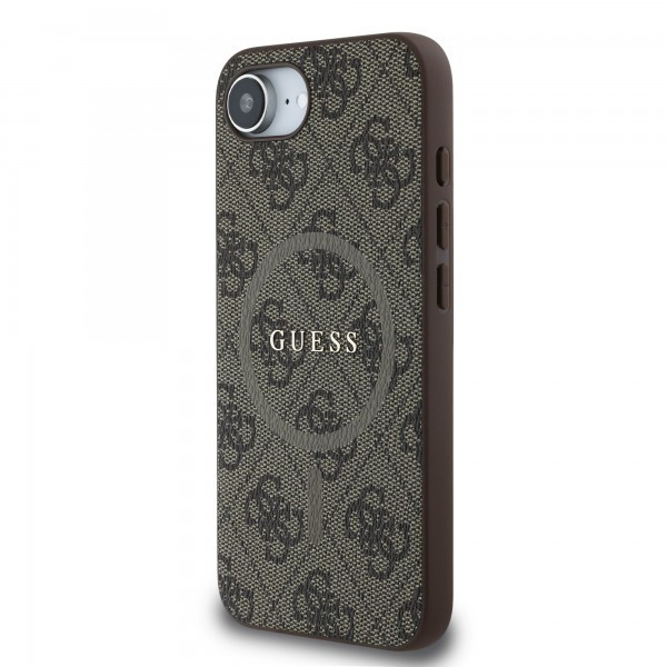 Guess PU Leather 4G Colored Ring Apple iPhone 17e / iPhone 16e MagSafe tok, barna