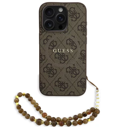 Guess PU Leather 4G Colored Ring Strap Apple iPhone 16 Pro MagSafe tok barna színű karpánttal, barna-arany