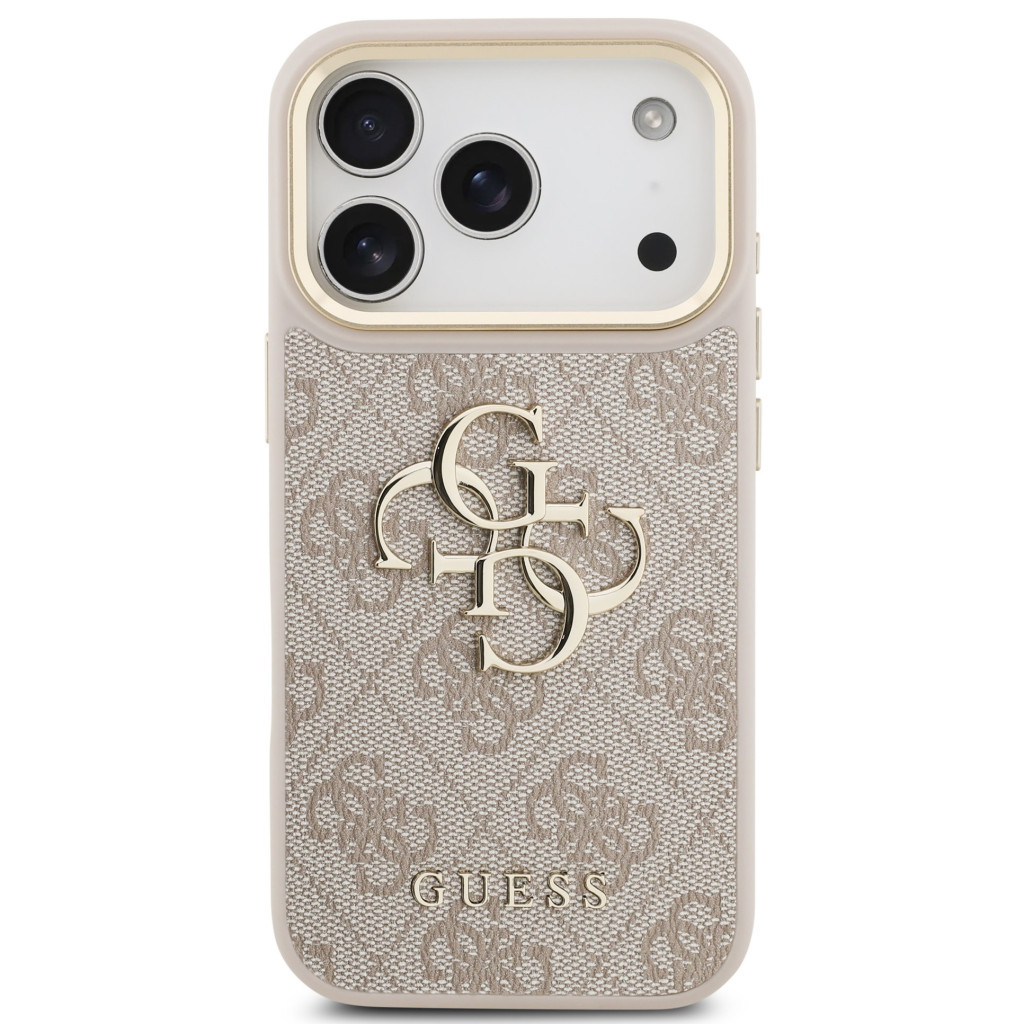Guess PU Leather 4G Metal Logo Gold Frame Apple iPhone 17 Pro MagSafe hátlap tok, rózsaszín