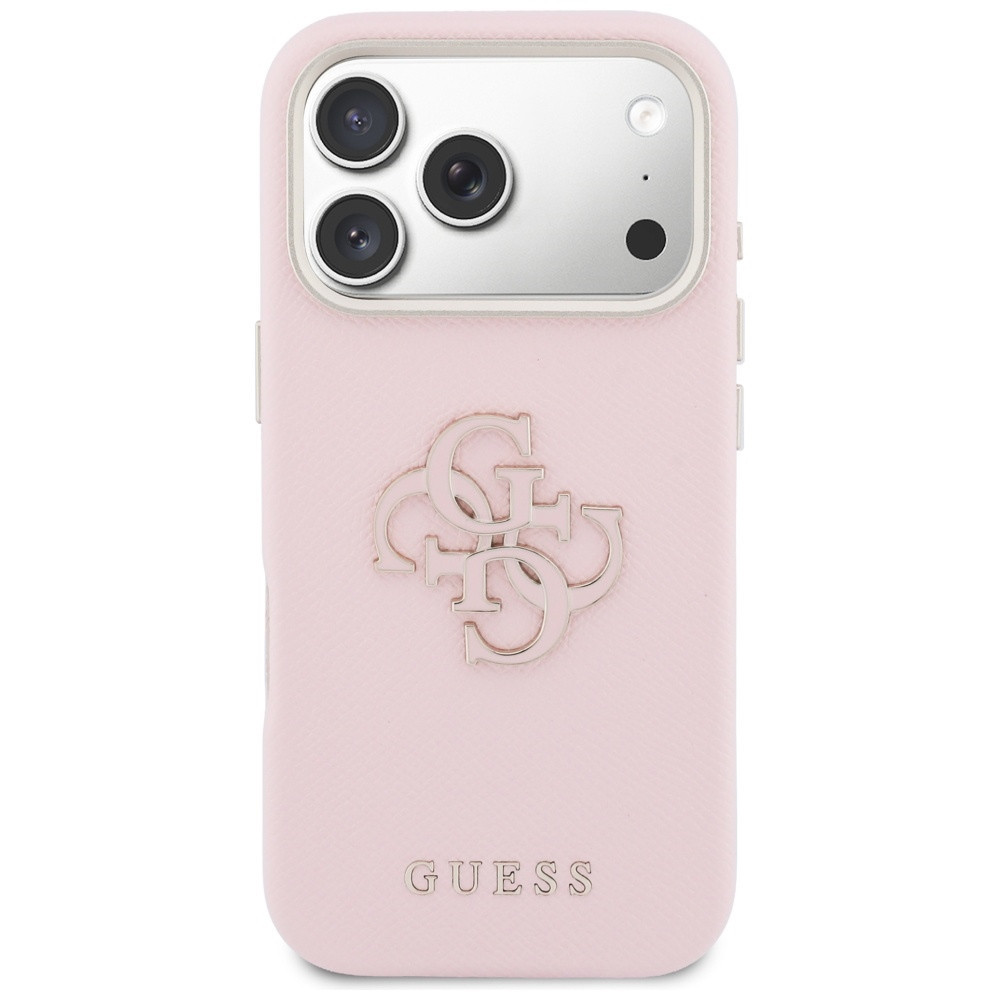 Guess PU Resin Logo Apple iPhone 17 Pro Max tok kameravédő peremmel, rózsaszín-arany Guess PU Resin Logo Apple iPhone 17 Pro Max tok kameravédő peremmel, rózsaszín-arany