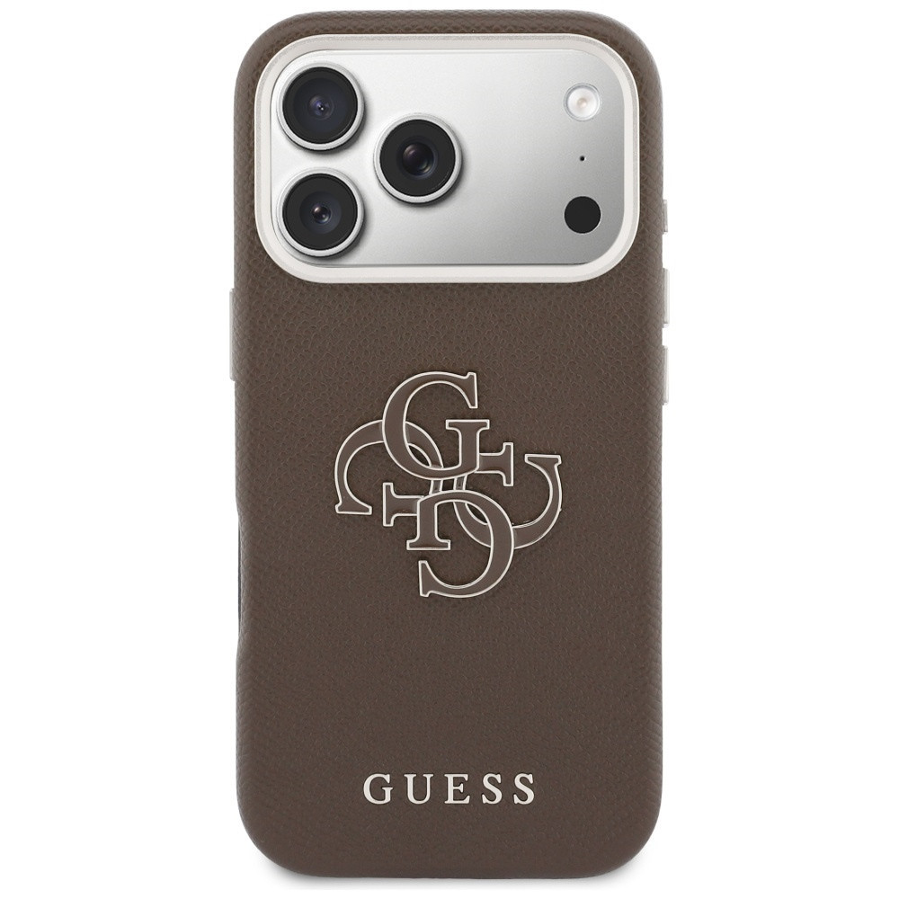 Guess PU Resin Logo Apple iPhone 17 Pro tok kameravédő peremmel, barna-arany