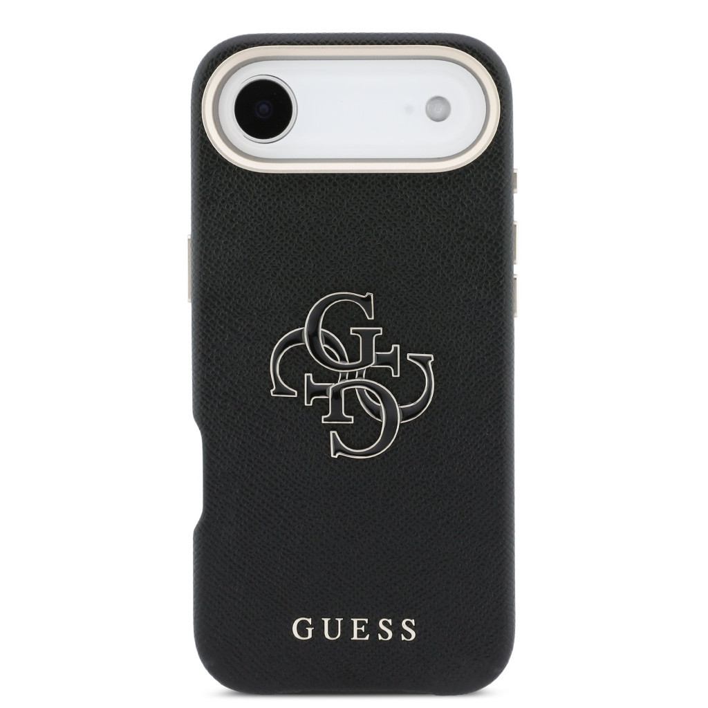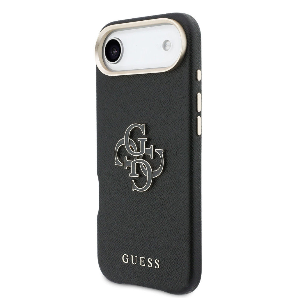 Guess PU Resin Logo Apple iPhone Air (2025) tok kameravédő peremmel, fekete-arany Guess PU Resin Logo Apple iPhone Air (2025) tok kameravédő peremmel, fekete-arany