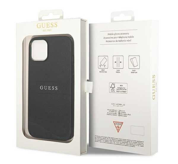 Guess PU Saffiano Apple iPhone 14 Plus bőr hátlap tok, fekete