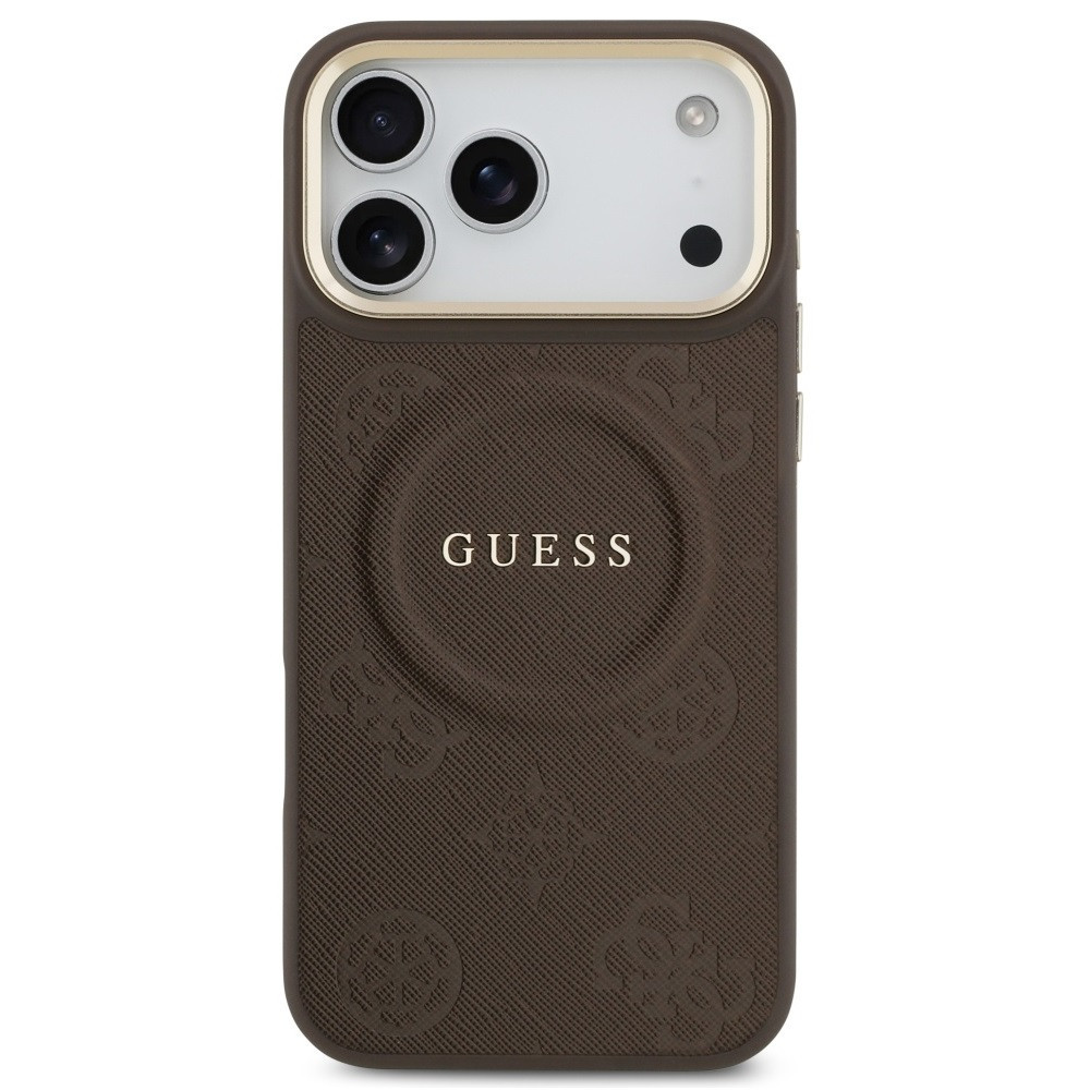 Guess Peony Hot Stamp Apple iPhone 17 Pro Max MagSafe tok kameravédő peremmel, barna-arany