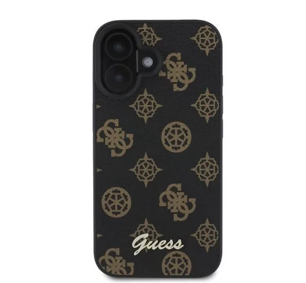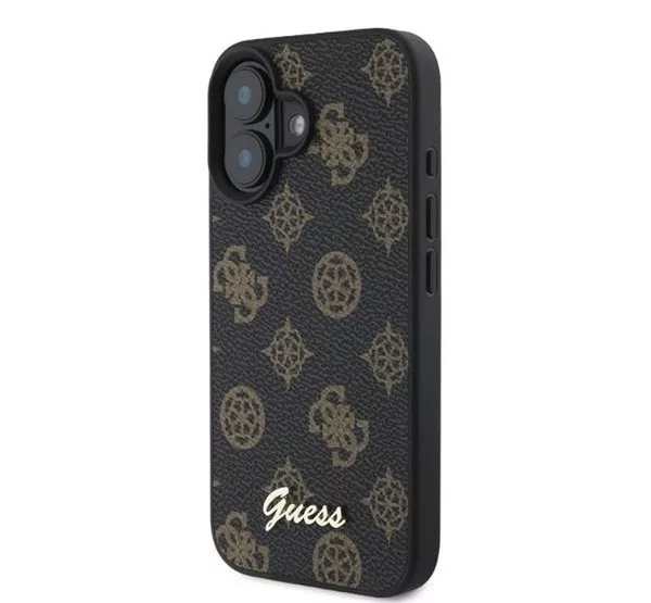 Guess Peony Script Apple iPhone 16 MagSafe kompatibilis hátlap tok, fekete/barna GUHMP16SPGPYSK