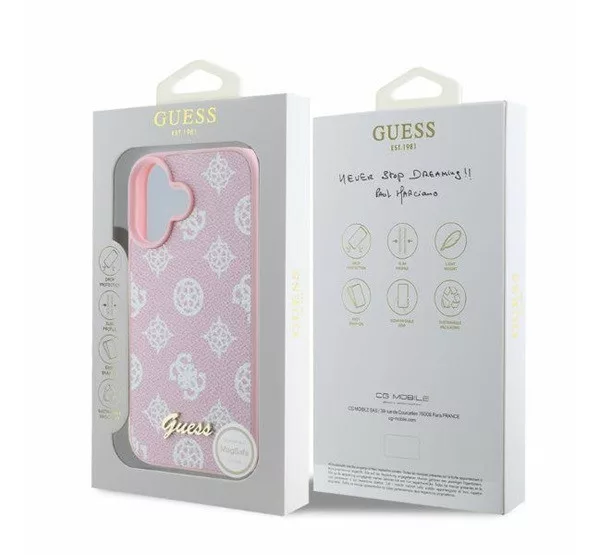 Guess Peony Script Apple iPhone 16 MagSafe kompatibilis hátlap tol, rózsaszín GUHMP16SPGPYSP