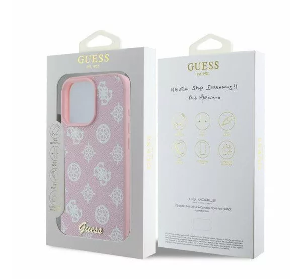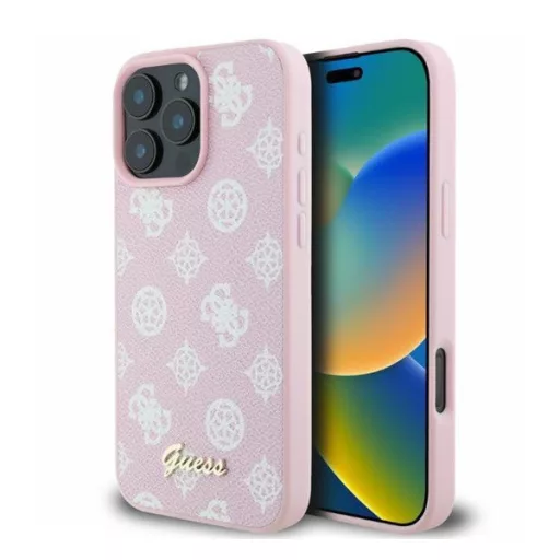 Guess Peony Script Apple iPhone 16 Pro Max MagSafe kompatibilis hátlap tok, rózsaszín GUHMP16XPGPYSP