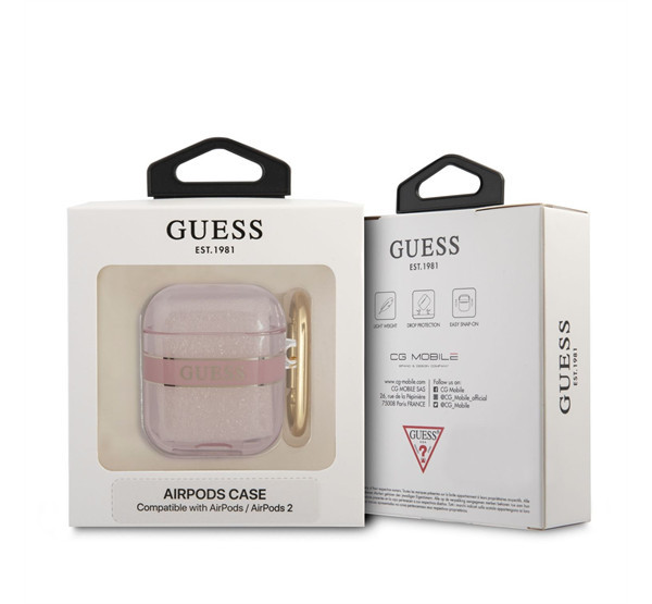 Guess Printed Stripe Apple Airpods tok, rózsaszín