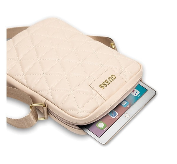 A Guess Quilted Tablet Bag elegáns és praktikus választás a tabletek számára. Kiváló minőségű anyagokból készült, és párnázott kialakítása biztosítja a készülék védelmét. A táska stílusos, fekete színű, és a híres Guess logóval díszített. Cipzáras záródással és több rekesszel rendelkezik, hogy minden szükséges tartozék könnyen elférjen benne. Ideális mindennapi használatra, munkába vagy utazáshoz.