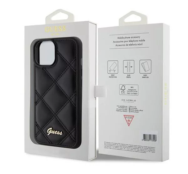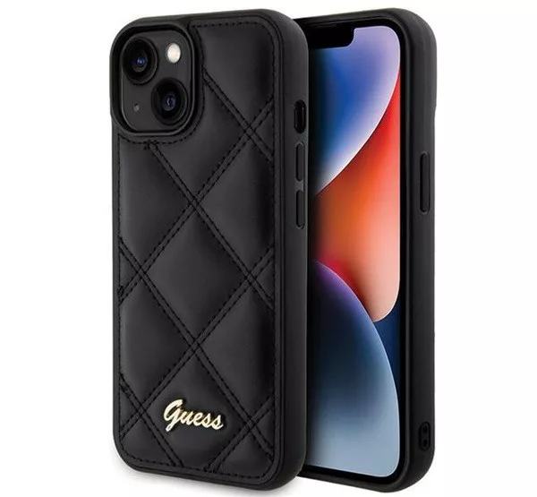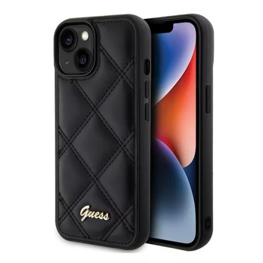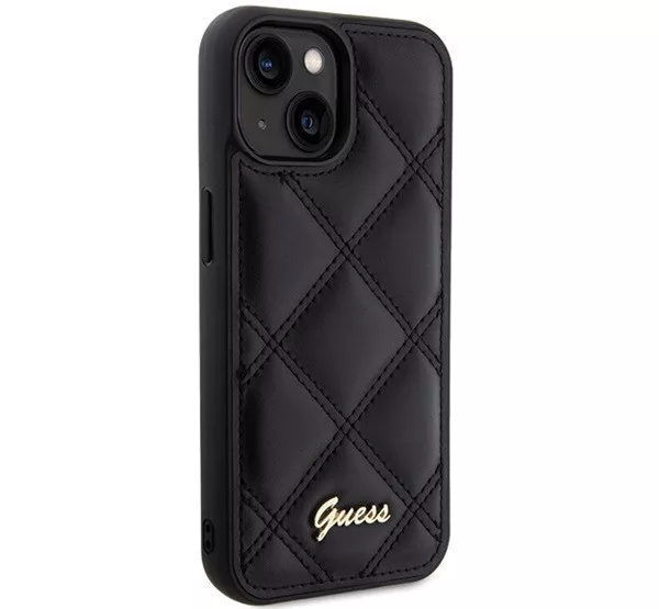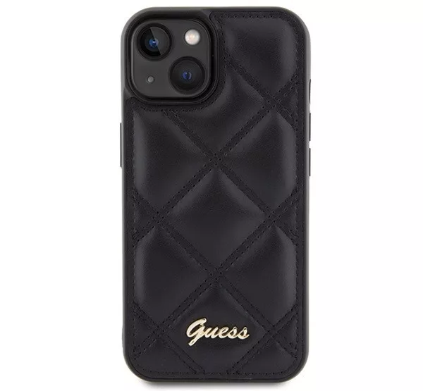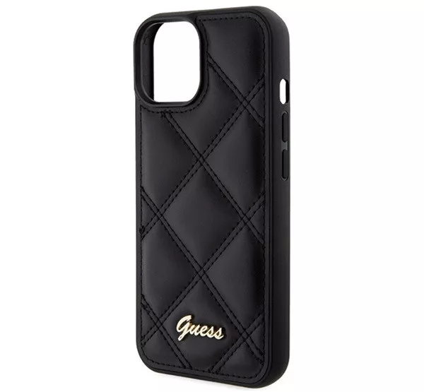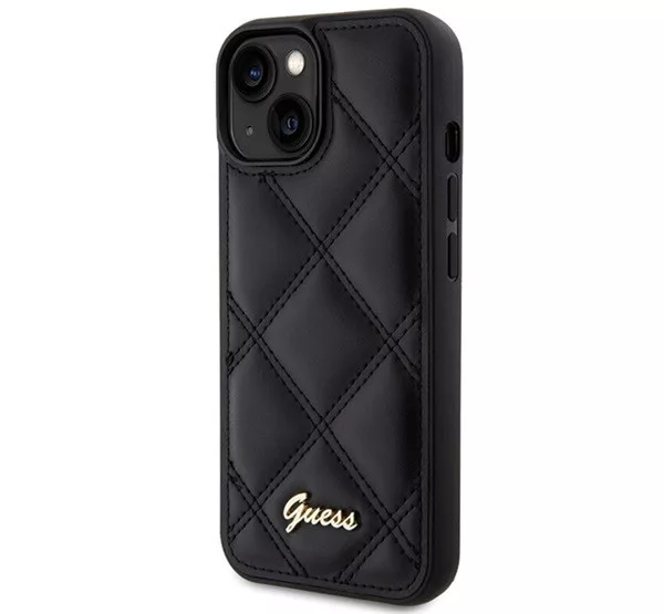 Guess Quilted Metal Logo Apple iPhone 15 hátlap tok, fekete