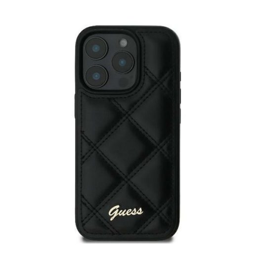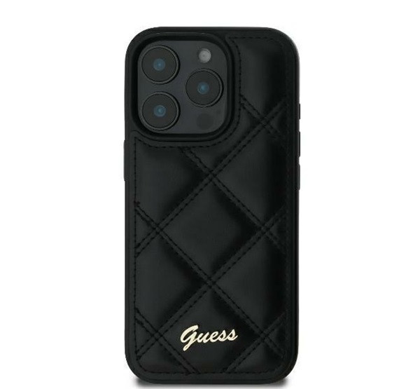 Guess Quilted Metal Logo iPhone 16 Plus kemény hátlap tok, fekete GUHCP16MPSQSQSK